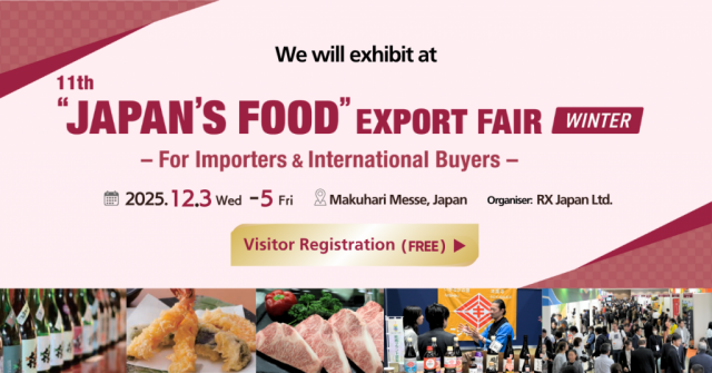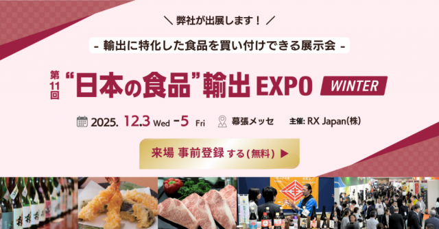 2025年12月3日(水)~12月5日(金) 幕張メッセにて開催される、「❝日本の食品❞輸出EXPO2025」に出展致します。